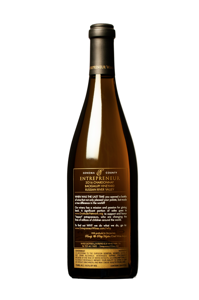 2016 Bacigalupi Russian River Chardonnay – One Case with Glassware Enjoy a full case (twelve bottles) of the acclaimed 2016 Bacigalupi Russian River Chardonnay, celebrated for its balance and elegance. This exclusive lot also includes a set of Yeti wine tumblers & chiller—perfect for sharing and savoring every pour. 2016 Bacigalupi Russian River Chardonnay – One Case with Yeti tumblers and Chillers Enjoy a full case (twelve bottles) of the acclaimed 2016 Bacigalupi Russian River Chardonnay, celebrated for its balance and elegance. This exclusive lot also includes a set of two Yeti wine tumblers and chiller—perfect for sharing and savoring every pour. Wine Profile Entrepreneur Wines’ 2016 Chardonnay hails from the Bacigalupi Vineyards on the west side of the Russian River. Located just south of Healdsburg and northwest of Windsor, these vineyards were made famous in 1976 by Mike Grgich when he was Winemaker at Chateau Montelena. The fruit for the prized Chardonnay was harvested from the Bacigalupi Vineyards. The resulting wine won the White Wine Competition at the Judgment of Paris in 1976. (The competition that turned the world of wine upside down. Check out the Alan Rickman movie, "Bottle Shock."). That vineyard is still producing world class wines, and our vines are more than 60 years old. Wine Maker’s Notes: With its light yellow straw hue and inviting approach, the 2016 Entrepreneur Bacigalupi Vineyard Chardonnay belies deep roots and surprising complexity. But, not so surprising considering the vineyard: the Bacigalupi family has been growing world-class Chardonnay in the Russian River Valley for three generations. Identified by its etherial perfume of light honey, dried stone fruit, barrel vanillin, and a touch of toffee, this vintage stands with the rest. Gentle and coating on the palate, with a tropical twist of citrus swirling at the finish. Wine Specifications: Vintage: 2016 Varietal : 100% Chardonnay Appellation: Sonoma County District: Russian River Valley Vineyard: Bacigalupi Vineyard Acid: .70/L pH: 3.44 Fermentation: Malolactic fermentation Aging: 10 months in 1/3 new French oak barrels. Alcohol: 14.5% Winemaker: Kirk Venge Production 80 cases Restrictions: Must be at least 21 years of age. Item cannot be shipped. Winning bidder will be contacted to arrange pickup in Pleasanton or Walnut Creek. When registering, please include a reliable phone number and email so we can connect with you easily. Our event coordinators will be in touch within 48 hours of the auction’s close to arrange the details. No shipping available.